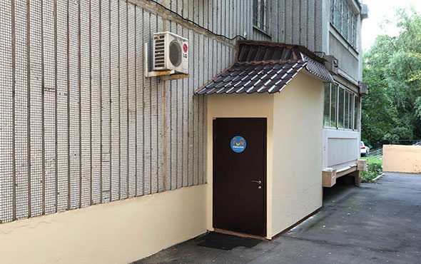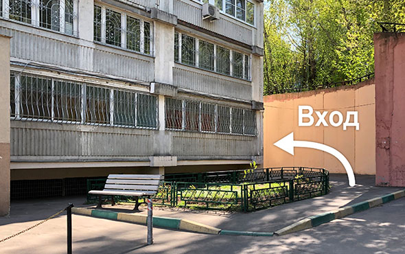 имеет отдельный вход. Вход в клуб находится с дальнего торца домов возле высокой бетонной стены.